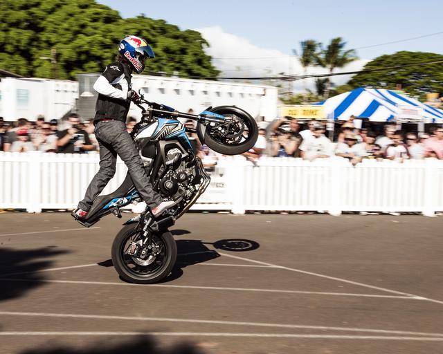 | Keywords: Joint Base Pearl Harbor Hickam Morale, Welfare and Recreation Holds 4th of July Celebration Event 150704-N-ON468-048.jpg en 150704-N-ON468-048 PEARL HARBOR July 4 2015 Professional street bike stunt rider Aaron Colton performs a stunt on his bike for spectators at a Fourth of July celebration event at Joint Base Pearl Harbor Hickam The Fourth of July event also included performances from the bands O A R and Dishwalla an automobile show a fireworks display and a kids theme park U S Navy photo by Mass Communication Specialist 2nd Class Jeff Troutman/Released 2015-07-04 Petty Officer 2nd Class Jeffrey Troutman https //www dvidshub net/image/2044639 150704-N-ON468-048 2015-07-05 04 30 PEARL HARBOR HI US PD-USGov-Military-Navy 2015 in Pearl Harbor 4th of July Celebration 2015 Sports at Pearl Harbor Images from DoD uploaded by Fæ Motorcycle stunt performers |