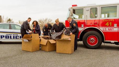 Keywords: Joint base residents and workers donate coats to area residents in need 131220-N-WY366-001.jpg en Left to right Battalion Chief Jeffrey Williams Joint Base Anacostia-Bolling Fire and Emergency Services Department; Andrea Coleman director of elementary education for Day Break Ministries; Police Chief Larry Graves JBAB DOD Police Department; Lt Cmdr Michael Rickett of Mitchell S D JBAB operations officer; and Division Chief Mark Hendley JBAB Fire and Emergency Services transfer coats from coat donation collection boxes to bags for easier transportation and carrying during distribution to people in the nearby community in need of them Firefighters and DOD police officers at JBAB conducted a coat drive to help keep residents of low-income housing areas in the District of Columbia's Ward 7 warm during the winter JBAB residents military members civilian and contracted workers donated gently-used coats of all sizes to help make the drive a success <br>Unit Joint Base Anacostia-Bolling 2013-12-20 Lt Cmdr Jim Remington https //www dvidshub net/image/1142669/joint-base-residents-and-workers-donate-coats-area-residents-need 131220-N-WY366-001 2013-12-20 19 10 WASHINGTON DC US PD-USGov-Military-Navy Joint Base Anacostia-Bolling Images from DoD uploaded by Fæ |