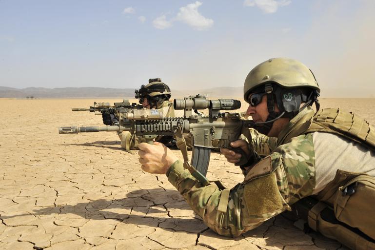 Keywords: Joint Mass Casualty Exercise DVIDS176430.jpg en A U S Air Force Guardian Angel team from 82nd Expeditionary Rescue Squadron provides security during a joint mass casualty exercise near Camp Lemonier The tactical recovery team worked alongside Marines from 13th Marine Expeditionary Unit to recover simulated IPs in an austere environment 2009-05-20 Petty Officer 2nd Class Jesse Awalt https //www dvidshub net/image/176430 090520-N-+++++-287 2009-06-01 03 54 GRAND BARA DJ PD-USGov-Military-Navy 13th Marine Expeditionary Unit Camp Lemonnier Images from DoD uploaded by Fæ M4 carbine with foregrip |