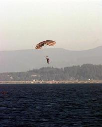 Keywords: JOINT MILITARY TRAINING DVIDS1082389.jpg en ILWACO Wash Sept 10 -- An Air Force paratrooper from Rescue Squadron 304 prepares to land in the water after jumping from an HC-130 Hercules airplane during a training exercise with the Coast Guard here Paratroopers frequently train with the Coast Guard and are utilized by the service during search and rescue missions USCG photo by PA2 Jacquelyn Zettles 2001-09-10 https //www dvidshub net/image/1082389 1082389 2013-12-11 19 36 ILWACO WA US PD-USGov Lockheed C-130 Hercules Images from DoD uploaded by Fæ |