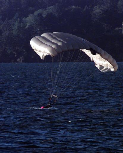 Keywords: JOINT MILITARY TRAINING DVIDS1082393.jpg en ILWACO Wash Sept 10 -- An Air Force paratrooper from Rescue Squadron 304 lands in the water after jumping from an HC-130 Hercules airplane during a training exercise with the Coast Guard here Paratroopers frequently train with the Coast Guard and are utilized by the service during search and rescue missions USCG photo by PA2 Jacquelyn Zettles 2001-09-10 https //www dvidshub net/image/1082393 1082393 2013-12-11 19 36 ILWACO WA US PD-USGov Lockheed C-130 Hercules Images from DoD uploaded by Fæ |