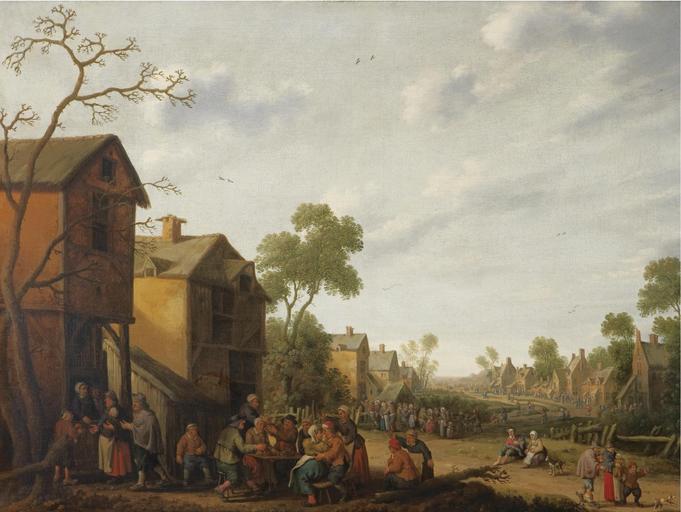 Keywords: Joost Cornelisz. Droochsloot - Een dorp scène met boeren eten en drinken...etc.jpg Artwork Creator Joost Cornelisz Droochsloot en A village scene with peasants eating and drinking outside an inn beggars to the left 1646 Oil on canvas cm 77 102 5 Private collection accession number object history Provenance Anonymous sale New York Christie's 18 January 1984 lot 154 credit line signed and dated lower centre left Jc in ligature Drooch Sloot / 1646 http //www sothebys com/de/auctions/ecatalogue/2008/old-master-paintings-am1051/lot 63 html sotheby's PD-old-100-1923 1666 Joost Cornelisz Droochsloot 1628 1646 paintings Images from Sotheby's 17th-century rural life in painting 17th-century paintings location missing |