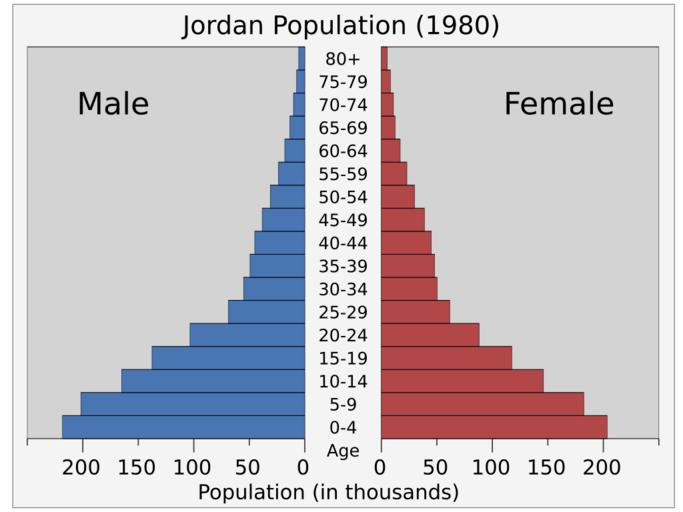 Keywords: Jordanpop-1980.svg translate yes en 1980 population pyramid of Jordan from UN estimates World Population Prospects http //esa un org/unpd/wpp/Excel-Data/population htm The 2012 Revision 2014-08-25 own Delphi234 cc-zero Population pyramids of Jordan Uploaded with UploadWizard |