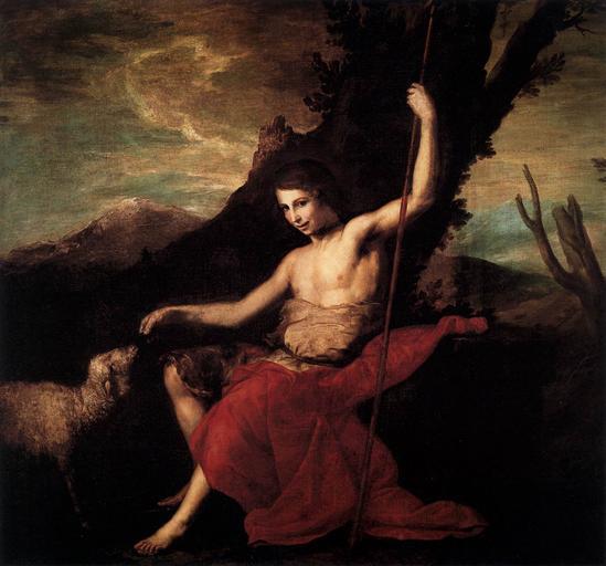 Keywords: José de Ribera - St John the Baptist in the Desert - WGA19390.jpg between 1644 1647 Oil on canvas size cm 184 198 Institution Prado object history credit line accession number WGA link 19390 http //www wga hu/art/r/ribera/2/st_john jpg http //www wga hu/html/r/ribera/2/st_john html PD-old-100 painting religious Spanish 1601-1650 WGA form painting WGA type religious WGA School Spanish WGA time period 1601-1650 Male saints by Ribera José de Ribera 049 Paintings by Ribera in the Prado Museum 1640s oil on canvas paintings in Spain 17th-century men looking at viewer in art 17th-century paintings of John the Baptist 17th-century oil paintings of sitting men at full length 17th-century religious paintings in Spain Paintings of male saints in nature |