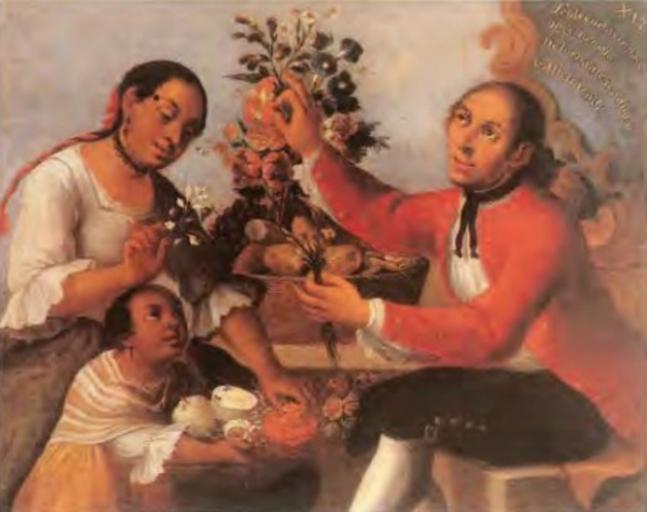 Keywords: José Joaquín Magón - Tente en el Ayre.jpg Artwork Creator José Joaquín Magón Tente en el Ayre - de la serie Las Castas Mexicanas century 18 Technique oil canvas cm 102 126 private collection Nuevo León Mexico Inscripción Tente en el ayre nace ingerto malo de tornaatras adusta y albarazado Inscription Tente en el ayre is born bad graft from a tanned Tornaatras and a Albarazado http //issuu com/bienal/docs/name208154 Other versions PD-old-100 José Joaquín Magón 18th-century paintings from Mexico 18th-century paintings in private collections Paintings in unidentified private collections Casta paintings 18th-century oil on canvas paintings People with flowers in art |