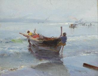 Keywords: José Navarro Llorens - llegar a la costa.jpg José Navarro Llorens 1867-1923 en Coming ashore oil canvas panel cm 17 8 21 accession number object history credit line signed 'J Navarro' lower right Christie's online 5566994 PD-old-auto-1923 1923 José Navarro Llorens Oil paintings of seascapes Paintings of boats |