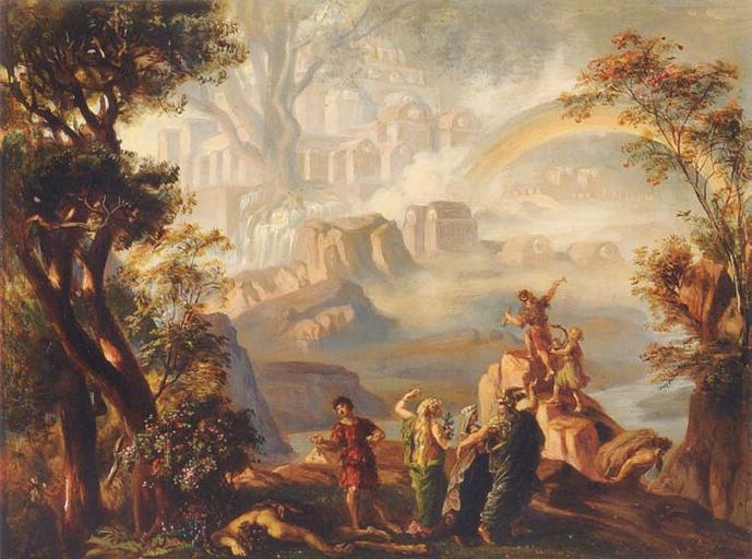 Keywords: Josef Hoffmann - Closing scene of Das Rheingold final.jpg Artwork creator Josef Hoffmann Austrian painter Siegfried returns to the Hall of the Gibichungs in act 2 scene 1 of Götterdämmerung 1876 Oil on canvas cm 82 5 107 5 Richard-Wagner-Museum Bayreuth Germany cite journal Carnegy Patrick w Patrick Carnegy 15th Earl of Northesk 2010 July Designs on the Ring The Wagner Journal 4 2 41 55 London United Kingdom The Wagner Journal Barry Millington PDF 1755-0181 2011-06-23 http //www nottingham ac uk/is/gateway/ejournals/wagner_journal/2010_04_02_July_2010 pdf object history Hoffmann was offering to sell copies of the final versions of his paintings to ready buyers Carnegy pp 46 48 credit line Carnegy suggests this is the oil sketch; however Angerer's photograph does not match this the facial expression of the leftmost character the shading of the stone below his right arm and the position of the hand of the female on his left side Those match the cover of the journal which Carnegy says is the final instead As the photograph is of the oil sketch Carnegy might have mixed up his photographs accession number Carnegy 2010 p 44 <gallery> File Victor Angerer - Josef Hoffmann's Closing scene of Das Rheingold cropped jpg Angerer's photo of the sketch File Victor Angerer - Josef Hoffmann's Closing scene of Das Rheingold cropped bw jpg Black and white version of the photo File Victor Angerer - Josef Hoffmann's 03-14 Walhall jpg From a postcard </gallery> PD-old-100-1923 PD-1923 Das Rheingold Josef Hoffmann Austrian painter 1876 oil on canvas paintings 19th-century paintings location missing Rainbows in art |