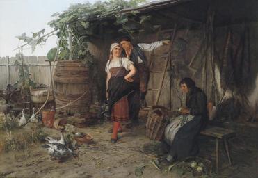 Keywords: Josef Kinzel Das Geheimnis.jpg Das Geheimnis J Kinzel Wien signature/place oil on canvas 70 x 96 cm http //www dorotheum com Dorotheum by 1925 Josef Kinzel 1852-1925 PD-old Images from Dorotheum Josef Kinzel