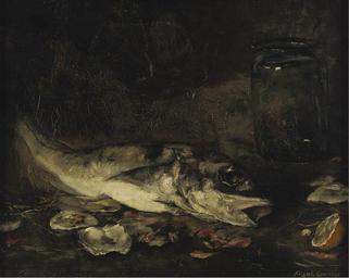 Keywords: Joseph Frank Currier - Still life with fish and oranges.jpg Artwork Creator Joseph Frank Currier oil on canvas cm 37 45 7 object history credit line Frank Currier ~ lower right signature accession number 1 http //www arcadja com/auctions/en/currier_joseph_frank/artist/45581/ Sotheby's via ARCADJA auction results<br/>2 http //www sothebys com/de/auctions/ecatalogue/2007/fine-art-old-masters-to-contemporary-n08333/lot 406 html Sotheby's New York 2007 06 13 lot 406 PD-old-100-1923 1909 Joseph Frank Currier 19th-century still life paintings Still life paintings of fish Images from Sotheby's
