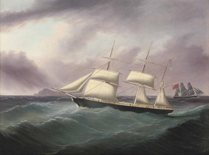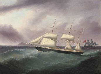 Keywords: Joseph Heard - The barque Humphrey Nelson.jpg Artwork Joseph Heard 1799-1859 en The barque Humphrey Nelson flying her recognition flags as she passes a three-masted merchantman off a mid-ocean The wooden barque Humphrey Nelson was built at Dundee in 1855 for Nelson Co of Maryport Registered at 476 tons and measuring 134 feet in length with a 25 foot beam she began her career sailing out of Liverpool under the command of her owner Captain P Nelson Within ten years however she was trading out of London to China under Captain Chellew but disappears from record in the early 1870s 1857 oil canvas cm 63 5 83 8 object history credit line Jo Heard 1857 ~ lower left signature and date accession number 1 http //www arcadja com/auctions/en/heard_joseph/artist/12999/ Christie's London May 13 2009 lot 803 via ARCADJA auction results<br/>2 Christie's online 5688791 8918 113 London Jun 12 2013 PD-old-auto-1923 1859 Joseph Heard Humphrey Nelson ship 1855 19th-century sailing ships in paintings 19th-century paintings location missing Paintings with signatures lower left Paintings with years of production artist 1857 paintings |