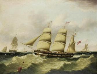 Keywords: Joseph Heard - The inward bound Liverpool barque ‚John Tomkinson‘, 1840.jpg Artwork Joseph Heard 1799-1859 en The barque žJohn Tomkinson 260 tons was built at Kirkcudbright in 1840 for Rimmer Co of Liverpool her voyages including Hobart and the West Indies; her last entry in Lloyd's Registers being for 1856<br/>The pilot sloop Nr 5 žIsaac in the left site of the painting was built in 1805 and with 50 tons registered She was later sold out of service in 1843 1840 oil canvas cm 72 92 object history credit line Jos Heard/1840 ~ lower left signature and date accession number http //www bonhams com/auctions/20765/lot/133/ Bonhams London 24 Apr 2013 lot 133 PD-old-auto-1923 1859 Joseph Heard John Tomkinson ship 1840 Images from Bonhams 19th-century sailing ships in paintings 19th-century paintings location missing 1840 oil on canvas paintings |