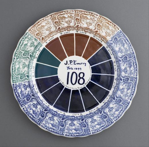 Keywords: Joseph P. Emery - Sample plate - Google Art Project.jpg en Joseph P Emery - Sample plate 1899 https //www google com/culturalinstitute/asset-viewer/sample-plate/xQFCqROohgHv8A projectId art-project Joseph P Emery Google Art Project Joseph 6851443 P Emery /collection/cooper-hewitt-national-design-museum/artwork/sample-plate-joseph-p-emery/6859059/ 224632 Joseph P Emery /artist/joseph-p-emery/29088215/ 29088215 /collection/cooper-hewitt-national-design-museum/ Cooper-Hewitt National Design Museum 3644669 http //www cooperhewitt org/ /collection/cooper-hewitt-national-design-museum/artwork/sample-plate-joseph-p-emery/6859059/ 1899 1899 Glazed porcelain 6859059 False 1899 2003-5-1 http //collection cooperhewitt org/view/objects/asitem/id/224632 Museum purchase from Charles E Sampson Memorial Fund Sample plate 1890 1900 1899 False 1 01587301587302 Object sample-plate-joseph-p-emery Sample plate s H x diam 1 9 x 26 cm 3/4 x 10 1/4 in Multiple Choice From Sample To Product Cooper-Hewitt National Design Museum New York NY November 9 2007 - September 10 2008 Painted in blue glaze in center well of plate J P Emery / Feb 1899 / 108 ; From 6145 To 6153 Fired in Slosh Glosh Oven On underside of plate painted in underglaze blue J P Emery / Grange St Color Works / Cobridge / design of wavey vertical line between 2 wavey horzontal lines; stamped near center 26 upside down / FURNIVALE / asterisk; stamped in lower left quadrant unclear mark in circular format--MADE unclear word / image of anchor / E unclear letters Glazed porcelain PD-old-70 PD-1923 Original upload log en wikipedia ftcg page en wikipedia Joseph_P _Emery_-_Sample_plate_-_Google_Art_Project jpg wikitable - 22 02 27 January 2013 3 001 × 2 952 2 777 935 bytes Dcoetzee w en <nowiki> Google Art Project wiki_artist </nowiki> Files uploaded by Yann Forget Plates |