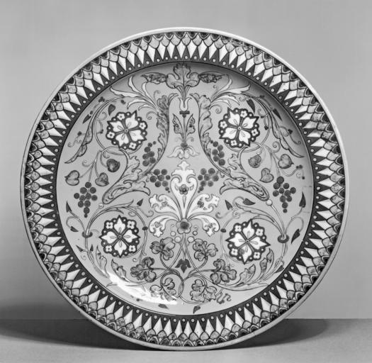 Keywords: Joseph-Théodore Deck - Plate in "Turkish" Style - Walters 481912.jpg Deck was France's most innovative and influential ceramist during the 19th century A native of Alsace on the German border he came to Paris in 1851 and began working for a stove-maker By 1858 he had established his own kiln and workshop which became famous for earthenware brightly glazed in various exotic and historical styles ca 1860 earthenware with enamel decoration cm 50 50 accession number 48 1912 17919 William T Walters Baltimore date and mode of acquisition unknown Henry Walters city Baltimore Walters Art Museum Henry Walters from 5 West Mt Vernon Place Acquired by William T Walters Botanical Delights Floral Motifs in 19th-Century Art Strathmore Hall Art Center North Bethesda; Academy of the Arts Easton Easton; Government House Annapolis 1998-1999 A Magnificent Age Masterpieces from the Walters Art Museum Baltimore The Nelson-Atkins Museum of Art Kansas City; Mint Museum of Art Charlotte; The Walters Art Museum Baltimore 2002-2004 place of origin Paris France Walters Art Museum license Théodore Deck Art of France in the Walters Art Museum Earthenware Enamel Ceramic plates Enameled terracotta |