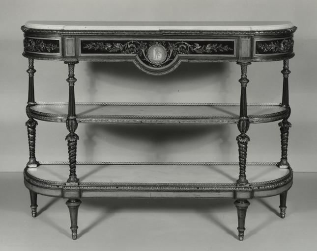 Keywords: Josiah Wedgwood - Console - Walters 6518.jpg Adam Weisweiler was one of a number of German furniture-makers who moved to France during the reign of Louis XVI He was celebrated for his delicate furniture which was acquired by Queen Marie Antoinette various members of the Bonaparte family and by the Prince of Wales This console or side table bears a circular medallion showing a Sacrifice to Peace manufactured in England by Josiah Wedgwood and exported to France late Other date century 18 rosewood marble ormolu painted tin ceramic cm 88 1 122 accession number 65 18 1552 Baron Alfred de Rothschild Jacques Seligmann Co New York Henry Walters Baltimore date of acquisition unknown by purchase Walters Art Museum Henry Walters Acquired by Henry Walters place of origin England United Kingdom Walters Art Museum license Josiah Wedgwood and Sons Media contributed by the Walters Art Museum needs category review Furniture in the Walters Art Museum console tables |