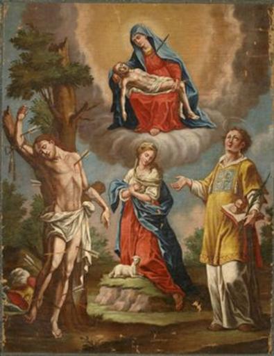 | Keywords: Josip Egartner - Pietà s Sv. Boštjanom, Sv. Nežo in Sv. Štefanom.jpg probably century 18 oil canvas cm 64 50 Institution National Museum of Slovenia http //www nms si/index php option com_content view category layout blog id 81 Itemid 27 lang en Zbirka slik Narodnega muzeja Slovenije PD-old-100 Josip Egartner 18th-century paintings in the National Museum of Slovenia 18th-century oil on canvas paintings in Slovenia 18th-century religious paintings in Slovenia Paintings of the Pietà in Slovenia Paintings of Saint Sebastian in Slovenia Paintings of Saint Agnes of Rome in Slovenia Paintings of Saint Stephen in Slovenia 18th-century paintings of the Pietà |