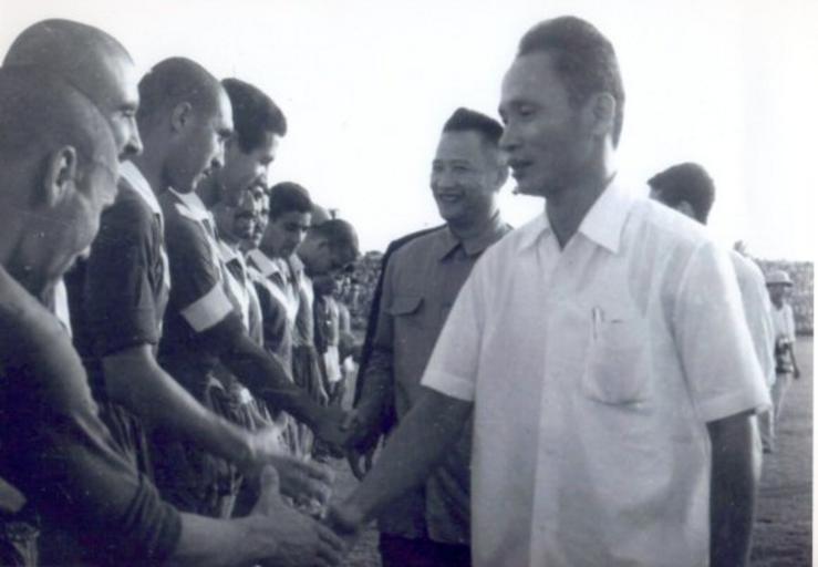 Keywords: Joueurs du FLN avec M. Phan Van Dong (1959).jpg fr Match de l'équipe du FLN contre l'équipe Nationale du Vietnam Joueurs Ben Titou Capitaine Soukan Abderrahmane mazouz Aek Said brahimi Sokan Mohamed Amar Ronaie Mokhtar Aribi ; M Phan Van Dong Premier Ministre http //www ambalgvn org vn/relation/archives html M NGUYEN DUC MINH ancien interprète à l'Ambassade d'Algérie au Vietnam 1959-11-22 PD-Vietnam PD-Algeria FLN football team |