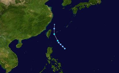 Keywords: Joyce 1947 track.png Track map of Tropical Storm Joyce of the 1947 Pacific typhoon season The points show the location of the storm at 6-hour intervals The color represents the storm's maximum sustained wind speeds as classified in the Saffir-Simpson Hurricane Scale see below and the shape of the data points represent the nature of the storm according to the legend below User Nilfanion/Tc/T The background image is from NASA Tracking data is from http //jtwccdn appspot com/NOOC/nmfc-ph/RSS/jtwc/best_tracks/wpindex html JTWC 2013-06-07 Supportstorm Tropical cyclone tracks 1947 Pacific typhoon season track maps |