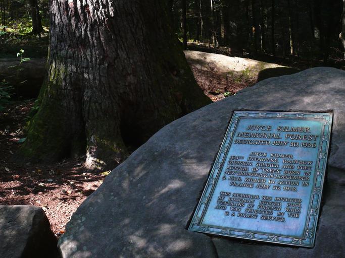 Keywords: Joyce Kilmer Forest-27527-3.JPG This memorial to American poet Joyce Kilmer stands near the center of Joyce Kilmer Memorial Forest Part of the Nantahala National Forest and the Slickrock Wilderness the 3840-acre memorial area is one of the few remaining examples of old growth hardwood forest in the eastern United States The forest is home to many poplar beech sycamore and oak trees some of which exceed 20 feet in circumference and are thought to be over 400 years old <br>Photo taken with a Panasonic Lumix DMC-FZ50 in Graham County NC USA http //www kenthomas us KenThomas us<br> personal website of photographer 2008-09-07 10 10-04 <sup>ISO 8601</sup> Ken Thomas This image is released to the public domain and therefore no permission or credit is required <br>Comments and/or feedback however are always welcome See my user page for contact info 35 21 19 40 N 83 56 03 25 W heading SW Joyce Kilmer Joyce Kilmer Memorial Forest Taken with Panasonic Lumix DMC-FZ50 Plaques to writers |