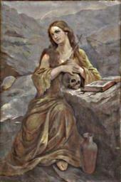 Keywords: Józef Bałzukiewicz ŚW. MARIA MAGDALENA.jpg ru П едположительно икона авто ства Юзефа Балзукевича pl OBRAZ - ŚW MARIA MAGDALENA Czas powstania po 1912 roku Autor Józef Bałzukiewicz Wilno Materiał płótno olej - obraz; drewno snycerka złocenia - rama Umiejscowienie w kościele pole główne nastawy ołtarza bocznego p w Św Maryi Magdaleny lewa nawa Obraz powstał staraniem proboszcza dobrzyniewskiego ks Antoniego Świla /1912 -1924/ Postać młodej kobiety na tle krajobrazu Święta siedząca na skałach przy skalnym pulpicie widoczna en face z głową przechyloną na prawe ramię rękami złożonymi na czaszce w lewej dłoni trzymająca krzyż Twarz owalna zamyślona oczy wzniesione ku górze bujne rude włosy sfalowane opadające na ramiona Szaty długie sfałdowane Suknia ugrowa z szerokimi rękawami z głębokim cięciem odsłaniającym szyję płaszcz ugrowo brązowy opadający fałdami spod którego widoczna bosa stopa Na skale rozłożona księga Przy stopach stojący dzban W oddali szarobrązowy pejzaż z odcieniami zieleni i fioletu Skały szaroniebieskie szare i błękitne Rama drewniana profilowana złocona с 1912 http //www dobrzyniewokoscielne pl/Zabytki/Zabytki1 aspx Józef Bałzukiewicz other versions PD-old-70-1923 Uploaded with UploadWizard Józef Bałzukiewicz |