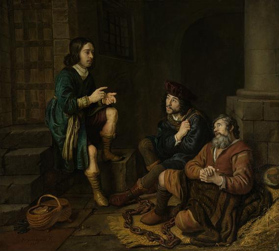 Keywords: Jozef legt de bakker en de schenker hun dromen uit Rijksmuseum SK-A-451.jpeg nl Jozef legt de bakker en de schenker hun dromen uit In de gevangenis zit Jozef links op een stenen trap de bakker en de schenker liggen rechts geketend op de grond drager Height cm 120 drager Width cm 134 exhibition history 2004-2008 Bruikleen tijdens renovatie RM Rembrandthuis Amsterdam 1998-2014 Langdurig bruikleen Rembrandthuis-I Amsterdam Institution Rijksmuseum Technique oil canvas object history Acquisition 1808 object type Potential derivatives exist check http //commons wikimedia org/w/index php search Rijksmuseum+SK-A-451 this search PD-US PD-old-100 Data and photography rights All data and all images made available through the API are either in the public domain or are subject to a CC0 license https //www rijksmuseum nl/en/api/terms-and-conditions-of-use cc-zero place of creation http //www rijksmuseum nl/collectie/SK-A-451 Jozef legt de bakker en de schenker hun dromen uit Q17320933 Uploaded with GWToolset Jozef legt de bakker en de schenker hun dromen uit Rijksmuseum SK-A-451 http //www rijksmuseum nl/media/assets/SK-A-451 Images uploaded by Fæ Images from the Rijksmuseum Paintings by Jan Victors in the Rijksmuseum Amsterdam |