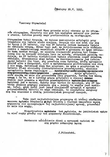 | Keywords: Józef Piłsudski - List Józefa Piłsudskiego dotyczący wzmocnienia artylerią I Brygady Legionów. - 701-001-024-007.jpg Piłsudski Institute document pl List Józefa Piłsudskiego dotyczący wzmocnienia artylerią I Brygady Legionów 1915-05-20 pl List atorstwa Józefa Piłsudskiego do nieznanego oficera dotyczy wzmocnienia oddziałów I Brygady Legionów artlerią pl Piotrkowskie; protest; Artyleria pl Letter Śniadecki Kuropaty <br/> Budzyny 701/1/24/7 701 180/1653 1712 1 PD-old-auto-unpublished 1935 yes Collections of Józef Piłsudski Institute of America from 1915 Józef Piłsudski in 1915 Letters by Józef Piłsudski |
