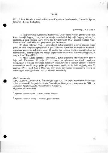 | Keywords: Józef Piłsudski - Notatki służbowe o oficerach - 701-001-100-105.jpg Piłsudski Institute document pl Notatki służbowe o oficerach 1915-07-02 pl Noty służbowe o oficerach pl Legiony; Józef Piłsudski - listy pl Other Sosnkowski Kazimierz <br/> Rydz-Śmigły Edward <br/> Berbecki Leon Dorotka <br/> Łowczówek <br/> Ożarów <br/> Tarłów <br/> Włostow <br/> Ożarów 1914-12-23 <br/> 1915-07-01 <br/> 1915-05-16 <br/> 1915-06-29 701/1/100/105 701 180/3110 3567 Archiwum Józefa Piłsudskiego 1 PD-old-auto-unpublished 1935 yes Collections of Józef Piłsudski Institute of America from 1915 Józef Piłsudski in 1915 Writings of Józef Piłsudski Military documents of Second Polish Republic |