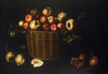 Keywords: Juan de Zurbarán - Basket with Apples, Quinces and Pomegranates - Google Art Project.jpg - 1643 1645 1620 Llerena 1620 1649 Seville 1649 Juan de 574467 Zurbarán 1620 - 1649 /collection/museu-nacional-dart-de-catalunya/artwork/basket-with-apples-quinces-and-pomegranates-juan-de-zurbaran/588710/ Juan de Zurbarán /artist/juan-de-zurbaran/4126442/ 4126442 /collection/museu-nacional-dart-de-catalunya/ Museu Nacional d'Art de Catalunya - MNAC Barcelona 497131 http //www mnac cat/ 12/28/2011 4 41 24 PM /collection/museu-nacional-dart-de-catalunya/artwork/basket-with-apples-quinces-and-pomegranates-juan-de-zurbaran/588710/ 1643 Still life Oil on canvas True 760 588710 True 1645 1643-1645 /collection/museu-nacional-dart-de-catalunya/level/floor-1/2539705/ Floor 1 3/24/2012 5 51 36 AM 024259-000 http //art mnac cat/fitxatecnica html;jsessionid inventoryNumber 024259-000 lang en Museu Nacional d'Art de Catalunya Painting 1640 1650 w1070 x h760 cm 1643-1645 False 1 45454545454545 Object /collection/museu-nacional-dart-de-catalunya/level/floor-1/2539705/room-39/559555/ Room 39 basket-with-apples-quinces-and-pomegranates-juan-de-zurbaran Basket with Apples Quinces and Pomegranates b 1070 Permanent loan from the Gil Collection 1922; acquired 1944 024259-000 Oil on canvas Still life special url_id kwG3W1H57tVdlQ PD-old-100-1923 1649 Renaissance and Baroque paintings in the MNAC Juan de Zurbarán Google Art Project works by Juan de Zurbarán