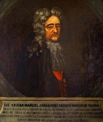 | Keywords: Juan Manuel Fernández Pacheco (Real Academia Española).jpg Juan Manuel Fernández Pacheco 1650-1725 marqués de Villena y duque de Escalona y primer director de la Real Academia Española Se conserva en la Real Academia Española ubicada en la ciudad de Madrid España Juan Manuel Fernández Pacheco 1650-1725 marquis of Villena and first director of the Real Academia Española Juan Manuel Fernández Pacheco 1650-1725 marqués von Villena erster Direktor der Real Academia Española Siglo XVIII oil canvas Size cm Institution Real Academia Española http //www raeinforma com/rae-content/uploads/2013/08/Pacheco jpg object history exhibition history credit line accession number http //www raeinforma com/rae-content/uploads/2013/08/Pacheco jpg PD-old-100 Juan Manuel Fernández Pacheco Paintings in the Real Academia Española Uploaded with UploadWizard |