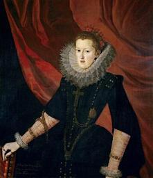 Keywords: Juan Pantoja de la Cruz 017.jpg Retrato de la reina Margarita de Austria-Estiria 1584-1611 que fue reina consorte de España por su matrimonio con el rey Felipe III Portrait of Margaret of Austria 1584-1611 queen of Spain 1607 Oil on canvas cm 112 97 Institution Prado http //www museodelprado es/coleccion/galeria-on-line/galeria-on-line/obra/margarita-de-austria-reina-de-espana/ other versions PD-old-100 DEFAULTSORT 1607; Margaret of Austria Portrait paintings of Margaret of Austria by Juan Pantoja de la Cruz Portrait paintings by Juan Pantoja de la Cruz in the Prado Museum 17th-century portrait paintings in the Prado Museum 1600s dresses 1600s oil on canvas paintings in Spain Portrait 1600s paintings from Spain 1607 oil on canvas paintings Portrait 1607 portrait paintings 17th-century oil portraits of standing women at three-quarter length Females with black dresses in art Portrait paintings of queens of Spain Red drapery in portrait paintings Ruffs in art female |