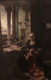 Keywords: Juana I Zaragoza 02.JPG Artwork Q19031505 Creator Francisco Pradilla y Ortiz Esta obra representa a la reina Juana I de Castilla 1479-1555 encerrada en Tordesillas donde permaneció varias décadas y junto a ella aparece su hija la infanta Catalina de Austria 1507-1578 que llegaría a ser reina consorte de Portugal por su matrimonio con el rey Juan III Esta obra fue adquirida por el Museo del Prado en 1990 1906 Oil on canvas cm 85 146 Institution Museo del Prado Depositado en el Institution Museo de Zaragoza own PD-old-100 cc-by-sa-4 0 https //www museodelprado es/coleccion/obra-de-arte/la-reina-doa-juana-la-loca-recluida-en/2687023e-7056-4290-babf-8b2879f07827 searchid 844b4b9d-b78d-5778-3647-cc934d4c7e5e accession number P07493 other versions La reina doña Juana la Loca recluida en Tordesillas con su hija la infanta doña Catalina Museo del Prado |