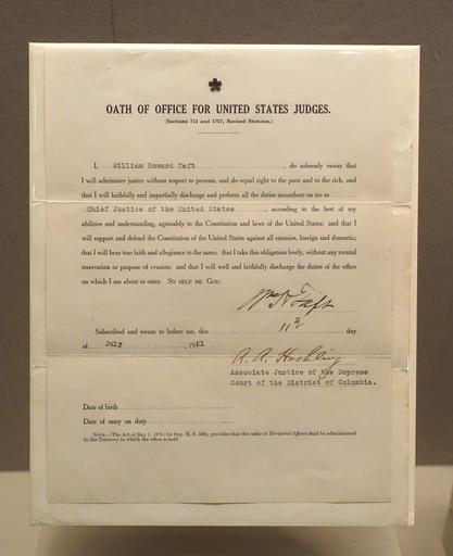 Keywords: Judicial oath of office for Chief Justice William Howard Taft, July 11, 1921 - National Museum of American History - DSC00133.jpg en Exhibit in the National Museum of American History Washington DC USA Photography was permitted in the museum without restriction 2015-03-27 11 11 48 own Daderot other versions cc-zero Presidential items in the National Museum of American History Manuscripts in the National Museum of American History William Howard Taft |