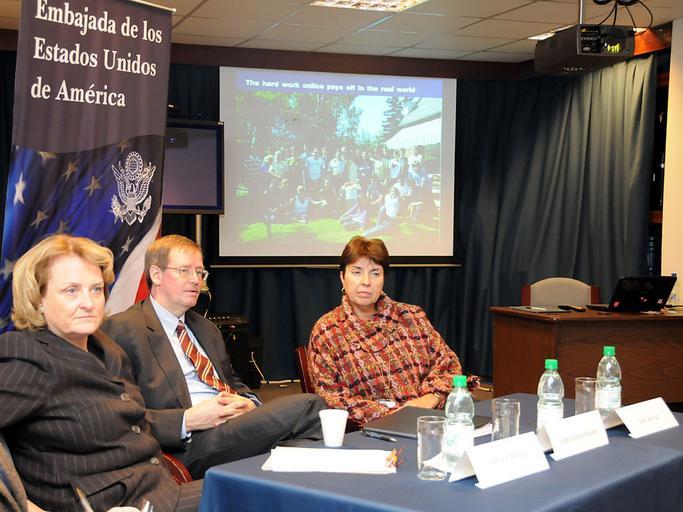 Keywords: judith mc hale judithmchale usembassy montevideo usembassymontevideo uruguay alianza science corner sciencecorner ingenio latu public diplomacy publicdiplomacy indoor La Subsecretaria Judith McHale participó en un evento en el que conoció a 19 fans de la página de Facebook de la embajada en Uruguay. La Subsecretaria Adjunta de Estado para Asuntos Públicos y Diplomacia Pública, Judith McHale, realizó una visita de dos días en Uruguay. McHale realizó un Tour guidado por Colonia del Sacramento y luego arribó a Montevideo. Su agenda, cargada de actividades, incluyó una reunión con las mujeres emprendedoras uruguayas que participaron el pasado año en la Conferencia Caminos hacia la Prosperidad, una reunión con los Fans de la página de Facebook de la embajada de EEUU en Uruguay, una visita a la Alianza Cultural Uruguay-Estados Unidos, una visita a Ingenio, la incubadora de empresas innovadoras ubicada en el LATU, participación en el Consejo de las Américas, entrevista personal con el Presidente Mujica y el Ministro de Relaciones Exteriores Luis Almagro y finalmente un Tour Guiado por el Teatro Solís. El embajador de Estados Unidos en Uruguay, David Nelson, acompañó en todo momento a la Subsecretaria y a su delegación. [US Embassy Photo by Pablo Castro] La Subsecretaria Judith McHale participó en un evento en el que conoció a 19 fans de la página de Facebook de la embajada en Uruguay. La Subsecretaria Adjunta de Estado para Asuntos Públicos y Diplomacia Pública, Judith McHale, realizó una visita de dos días en Uruguay. McHale realizó un Tour guidado por Colonia del Sacramento y luego arribó a Montevideo. Su agenda, cargada de actividades, incluyó una reunión con las mujeres emprendedoras uruguayas que participaron el pasado año en la Conferencia Caminos hacia la Prosperidad, una reunión con los Fans de la página de Facebook de la embajada de EEUU en Uruguay, una visita a la Alianza Cultural Uruguay-Estados Unidos, una visita a Ingenio, la incubadora de empresas innovadoras ubicada en el LATU, participación en el Consejo de las Américas, entrevista personal con el Presidente Mujica y el Ministro de Relaciones Exteriores Luis Almagro y finalmente un Tour Guiado por el Teatro Solís. El embajador de Estados Unidos en Uruguay, David Nelson, acompañó en todo momento a la Subsecretaria y a su delegación. [US Embassy Photo by Pablo Castro] |