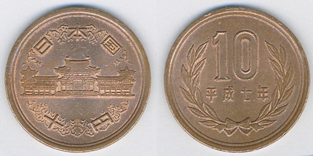 | Keywords: JuEnDamaBothSidesWP.jpg 10 Yen coin of Japan Left Inscription 日 国 Nippon-koku 十円 Ten yen Design Byodoin a Buddhist temple in Uji Kyoto Prefecture Japan Right Inscription 10 value of coin in yen 平成七年 The year Heisei 7 I scanned this coin One coin two scans 2005-09-03 own assumed Fg2 See also Image JuEnDamaByodoinWP jpg Image JuEnDamaEvergreenTreeWP jpg 10 yen coins Phoenix Hall Byodo-in in art | ||||