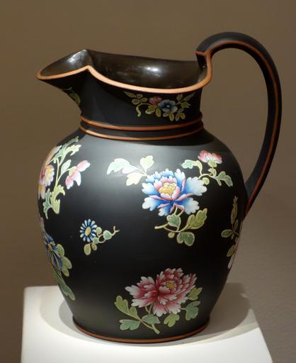 Keywords: Jug, Wedgwood Factory, early 1800s, black basalt ware with polychrome enamel - Chazen Museum of Art - DSC02240.JPG en Exhibit in the Chazen Museum of Art University of Wisconsin-Madison Madison Wisconsin USA This artwork is old enough so that it is in the public domain Photography was permitted in the museum without restriction 2013-07-21 13 47 01 own Daderot cc-zero Wedgwood pottery in the Chazen Museum of Art Uploaded with UploadWizard Wedgwood Black Basalt |