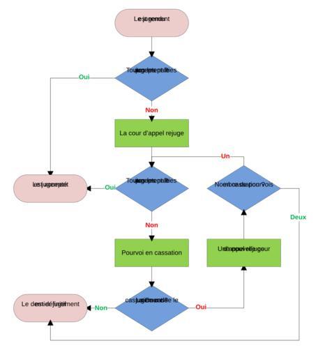 Keywords: Jugement en France.svg fr Fonctionnement de la Justice en France à partir du rendu du premier jugement appel et pourvoi en cassation 2012-03-07 own Emeric84 cc-zero Law of France SVG flow charts