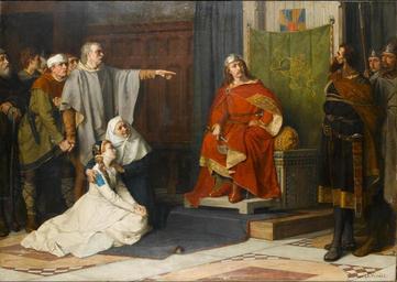 Keywords: Juliaan De Vriendt - King Boudewijn's judgment on one of his fellow noblemen.jpg Artwork Creator Juliaan De Vriendt 1863-1935 Oil on canvas size cm 145 206 accession number object history credit line signed 'Juliaan De Vrient' lower right Auctioned at Bonhams on 22 March 2005 London Lot 13 https //www bonhams com/auctions/11930/lot/13/ PD-old-100 Juliaan De Vriendt |