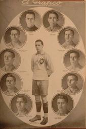 | Keywords: Julio Kunz, Paulo Barata, Dino Galvao Bueno, Alfredo Silva, Orlando Torres, Ernesto Machado, Almeida Netto, José Bermúdez, Aníbal Médici Candiota, José Carlos Guimaraes y Arturo Moraes Castro. - El Gráfico 120.jpg El Grafico del 15 de Octubre de 1921 Edicion 120 http //www elgrafico com ar/thumbs php id 15338 w 1500 h 2000 El Gráfico Not needed public domain PD-AR-Photo El Gráfico | ||||