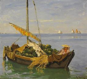Keywords: Julius Ludwig Friedrich Runge - Venezianische Lagune mit Schiffen.jpg Julius Ludwig Friedrich Runge 1843 “1922 de Venezianische Lagune mit Schiffen im Vordergrund Händlerin mit Melonen im Boot year unknown oil canvas cardboard cm 42 46 http //www zeller de/de/suchergebnisse-alle-kataloge/auktionsartikel/julius-ludwig-friedrich-runge-1843-roebel-1922-lindau-studierte-bei-gude-und-schoenleber-war-2/ Auktionshaus Zeller Auktion 96 April 2008 lot 464 Other versions PD-old-auto-1923 1922 Julius Ludwig Friedrich Runge Oil paintings of seascapes Images from Auktionshaus Zeller Paintings of boats in Venice Melons in art People with boats in art |