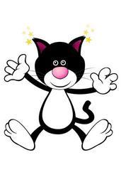 Keywords: jumping cat feline cute happy smiling cartoon character cartoon character
