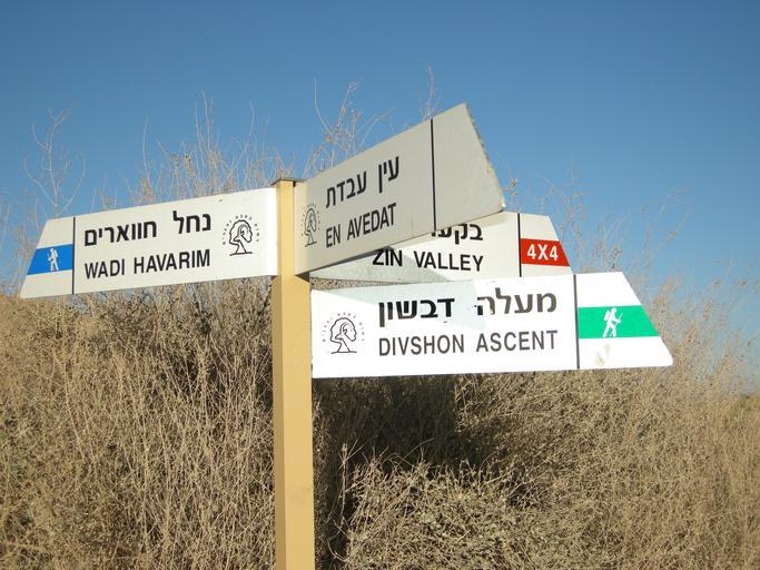 Keywords: Junction maale Divshon.JPG Junction maale Divshon Own 2008-02-16 Yoavd Zin Valley Hiking and footpath signs in Israel