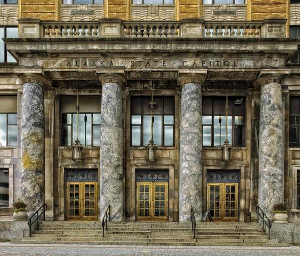 Keywords: juneau alaska capitol building architecture columns doors landmark historic city cities government hdr