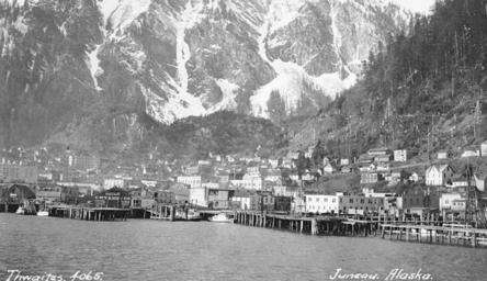 Keywords: Juneau from the water, ca 1912 (THWAITES 193).jpeg check categories 27 October 2016 2 Photograph Creator John E Thwaites Caption on image Juneau Alaska PH Coll 247 521<br/>Located on the mainland of Southeast Alaska Juneau was built at the heart of the Inside Passage along the Gastineau Channel The area was a fish camp for the indigenous Tlingit Indians In 1880 nearly 20 years before the gold rushes to the Klondike and Nome Joe Juneau and Richard Harris were led to Gold Creek by Chief Kowee of the Auk Tribe They found mother lode deposits upstream staked their mining claims and developed a 160 acre incorporated city they called Harrisburg which brought many prospectors to the area The City of Juneau was formed in 1900 The state capital was transferred from Sitka to Juneau in 1906 while Alaska was a U S Territory The Treadwell and Ready Bullion mines across the channel on Douglas Island became world-scale mines operating from 1882 to 1917 In 1916 the Alaska-Juneau gold mine was built on the mainland and became the largest operation of its kind in the world In 1917 a cave-in and flood closed the Treadwell mine on Douglas It produced 66 million in gold in its 35 years of operation Fishing canneries transportation and trading services and a sawmill contributed to Juneau's growth through the early 1900s A federally recognized tribe is located in the community -- the Central Council Tlingit Haida Indian Tribes of Alaska; Douglas Indian Association; Aukquan Traditional Council not recognized Juneau has a Tlingit history with a strong historical influence from the early prospectors and boom town that grew around full-scale gold mining operations Subjects LCTGM Juneau Alaska ; Cities and towns--Alaska; Gastineau Channel Alaska ; Juneau Mount Alaska ; Waterfronts--Alaska--Juneau; Piers wharves--Alaska--Juneau depicted place Juneau Alaska ca 1912 Institution University of Washington UWASH-THWAITES-source accession number thwaites 193 PD-old-auto-1923 1940 Information field Order Number THW265 Images from the John E Thwaites Photographs of Alaska Collection to check Juneau Alaska Waterfronts |