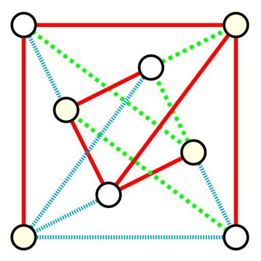 Keywords: K44 arboricity.svg Partition of the complete bipartite graph K<sub>4 4</sub> into three forests showing that it has arboricity three Own 2007-10-24 David Eppstein Files by User David Eppstein from en wikipedia Complete bipartite graph K 4 4 Graph coloring; edge |