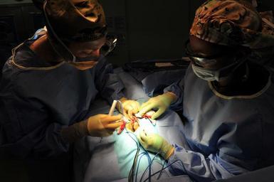 Keywords: K-9 expeditionary medical surgery 141115-N-RY232-172.jpg en Lt Cmdr Tamara Worlton Camp Lemonnier Expeditionary Medical Facility surgeon left and Hospital Corpsman 2nd Class Lesly Palencia remove an abscess from Bery a military working dog during surgery Nov 15 2014 The surgery was performed to remove a thick abscess from a severe insect sting that was not responsive to medication U S Navy photo by Mass Communication Specialist 1st Class Julia A Casper/Released 2014-11-15 Julia Casper https //www dvidshub net/image/1663778 141115-N-RY232-172 2014-11-19 06 32 CAMP LEMONNIER DJ PD-USGov-Military-Navy Camp Lemonnier Images from DoD uploaded by Fæ