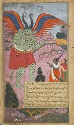 Keywords: Kabandha tells Rama and Laksmana how he came to have his hideous form.jpg en Folio from the Ramayana of Valmiki The Freer Ramayana Vol 1 folio 138; recto Kabandha tells Rama and Laksmana how he came to have his hideous form; verso text 1597-1605 Shyam Sundar Indian Mughal dynasty Opaque watercolor ink and gold on paper H 25 9 W 14 1 cm Northern India Gift of Charles Lang Freer F1907 271 138 1597-1605 http //www asia si edu/collections/singleObject cfm ObjectNumber F1907 271 138 Shyam Sundar Indian Mughal dynasty PD-old-100 Uploaded with UploadWizard Kabandha |
