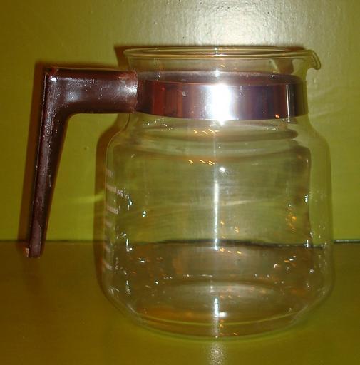 Keywords: Kaffekolbe.JPG no Kaffekolbe i glass med hank i plast Høyde 14 5 cm own Jon Birger Østby 2012 Eget foto Coffee pots Collections of Norsk Folkemuseum Cc-zero