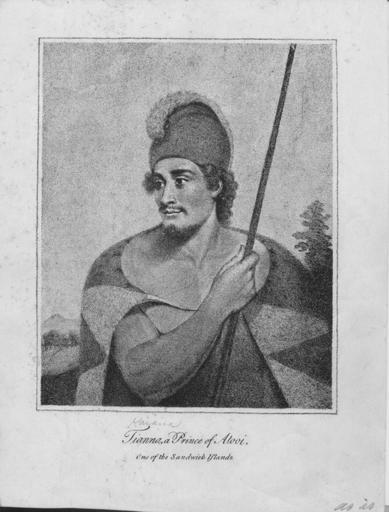 | Keywords: Kaiana (PP-96-7-001).jpg en Tianna a Prince of Atooi or Ka'iana lithograph by Spoilum 1787 in John Meares Voyages Made in the Tears 1788 and 1789 http //archives1 dags hawaii gov/gallery2/main php g2_itemId 1939 g2_imageViewsIndex 1 Hawaii State Archvives Call Number PP-96-7-001 credited to London 1790 rpt New York 1967 1787 <gallery>File Tianna a Prince of Atooi lithograph by Spoilum c 1787 jpg</gallery> Kaiana Hawaii in the 1780s Mahiole ʻAhu ʻula PD-old-100 | ||||