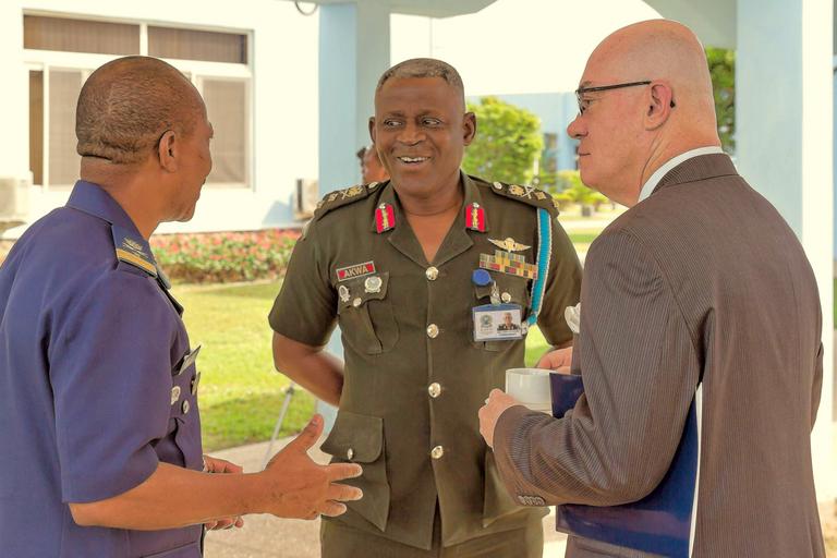 Keywords: KAIPTC 2016-03-02 MajGen Akwa Jackson B001.jpg en During the National Maritime Strategy Development Workshop for Gulf of Guinea states to develop national maritime strategies<br /> Location Kofi Annan International Peacekeeping Training Centre Accra Ghana <br /> Date other date 2016-03-02 <br /> person left <br /> person center Major General Obed Boamah Akwa Ghana Army Commandant of the Kofi Annan International Peacekeeping Training Centre since June 2013 <br /> person right Robert P Jackson U S Ambassador to Ghana https //www facebook com/USEmbassyGhana/photos/a 911283978987352 1073742030 146328372149587/911284075654009/ type 3 theater This photo at Facebook official photographer of the US Embassy in Ghana 2016-03-02 Relations of Ghana and the United States Kofi Annan International Peacekeeping Training Centre Robert Porter Jackson People of the Ghana Army Military uniforms of Ghana People of Ghana in 2016 Accra in 2016 PD-USGov This photo was publicised by the US Embassy in Ghana with the license public PD-GHAGov This photo shows state authorities of the Republic of Ghana on a public photo |