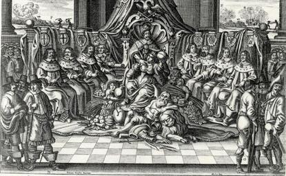 Keywords: Kaiser im Kreis der Kurfürsten.jpg Teutschlands fröhliches zuruffen/zu glückseliger Fortsetztung/der mit Gott/in regensburg angestellten allgemeinen Versammlung des H Röm Reiches obersten Haubtes und Gliedern Der Kaiser im Kreise der Kurfürsten Kupferstich von Abraham Aubry Nürnberg 1663/64 in Wolfgang Harms Hg Deutsche Illustrierte Flugblätter des 16 und 17 Jahrhunderts Bd 2 München 1980 S 379 The Emperor amongst the electoral princes PD-Art Prince-electors Leopold I Holy Roman Emperor Reichstag Holy Roman Empire History of Regensburg Cologne See coats of arms Trier See coat of arms Artworks missing infobox template |