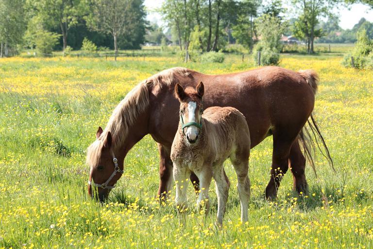 Keywords: kaltblut horse animal halter horses mare foal pasture graze nature